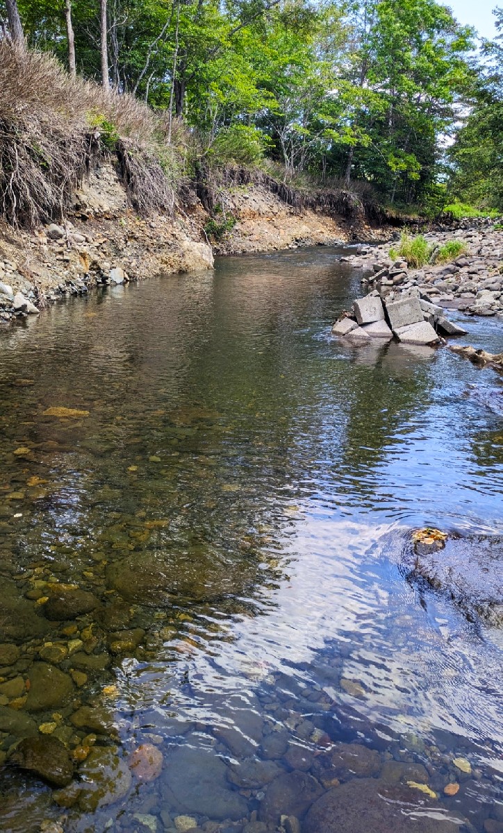 そして天然の滝がテトラで護岸されているポイントに到着。魚類の遡上は難しそうですが、前回の調査で滝の上流も魚影がある事は確認済です。しかしここは誰もが狙うためかチェイスのみでノーヒット。