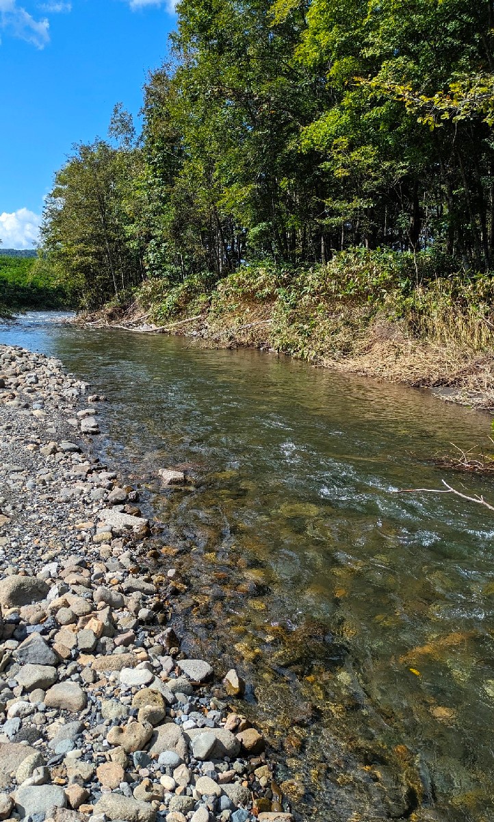 今日は上川町を流れるエチャナンケップ川で釣りをしてきました。この川は何度か訪れた事がありますが、思いのほか釣り人が入っていて尺以上の魚を見た事がありません。加えて上流域は熊の痕跡も多いので、まずは釣り人が多い支流との合流地点から入渓すると予想通りノーヒット。