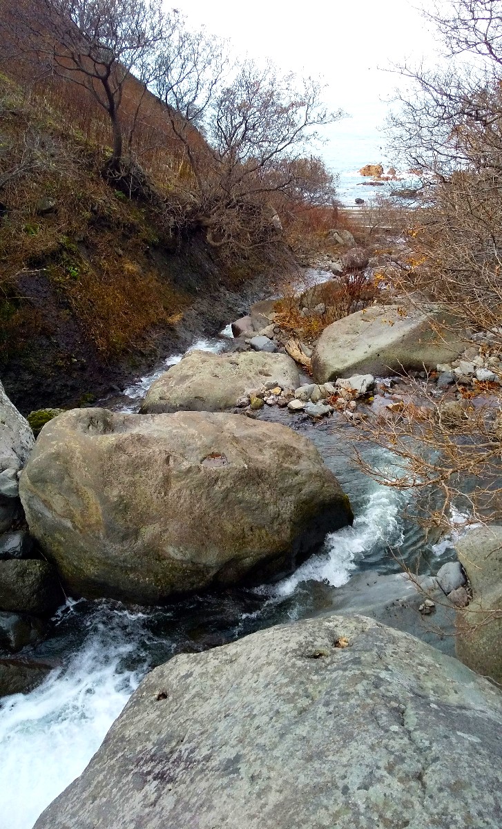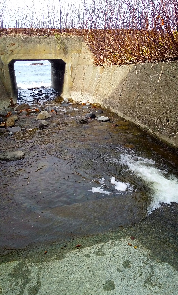 ついでに隣を流れる第二オコツナイ川も見てみると、河口からすぐの場所に深場があります。早速仕掛けを投入すると