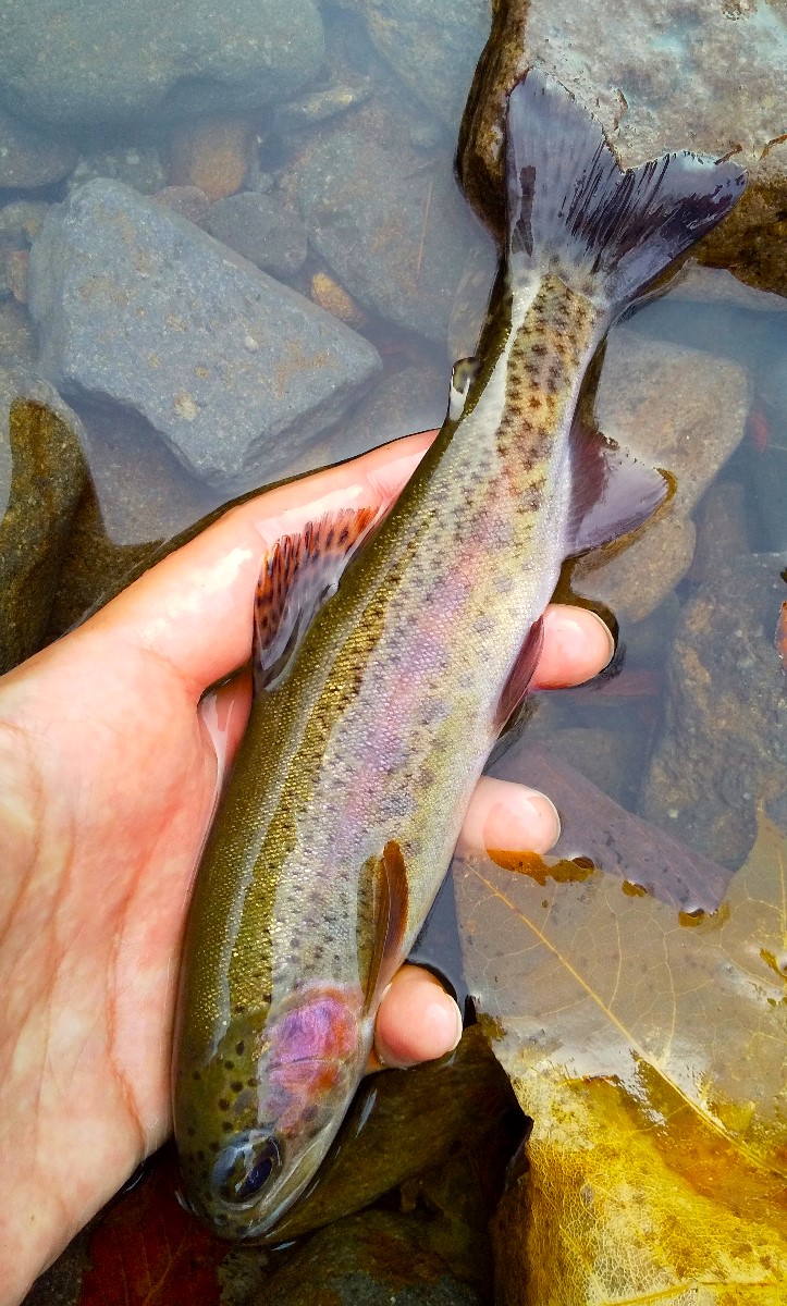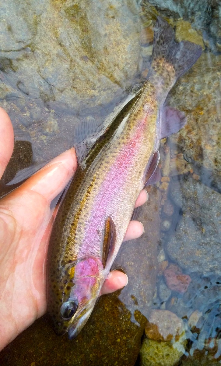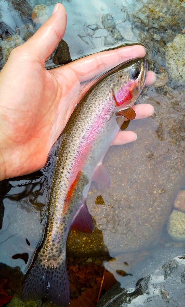 24センチのニジマスがヒット。その後も同じようなサイズのニジマスしか釣れず、今日はここで帰宅しました。両河川共にイワナの魚影が確認できなかったのは意外でしたが、河口付近の人工物によりアメマスが遡上しない分、ニジマスの楽園となっているのかもしれません。また機会があれば万全の装備で上流域を調査しようと思います。魚は全てリリースしました。
