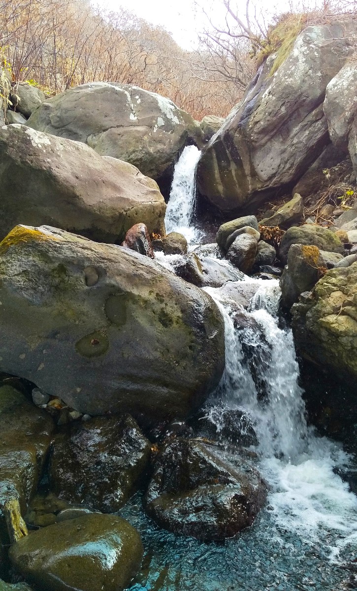 今日は島牧村を流れるオコツナイ川で釣りをしてきました。ご覧の通り大岩の間を豪快に流れ落ちる山岳渓流です。