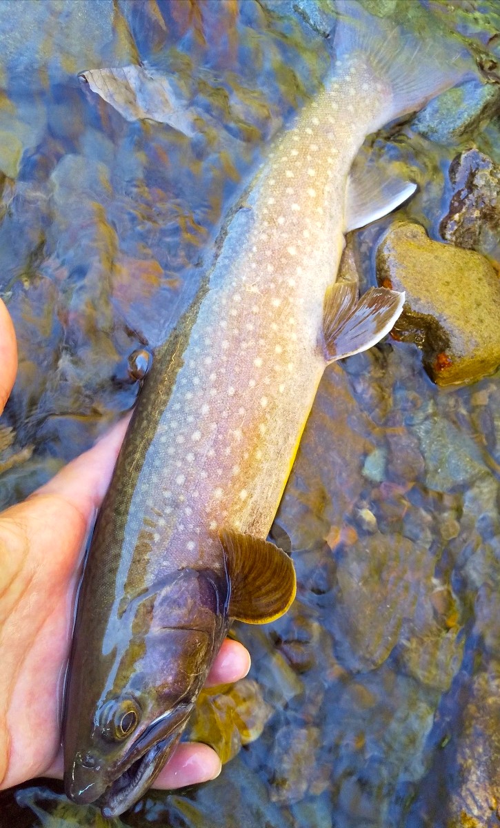 なんと36センチの巨大イワナです。予期せぬ大物に驚きを隠せません。獰猛な面構えは長年渓流で生き抜いてきた力強さを感じさせますね。