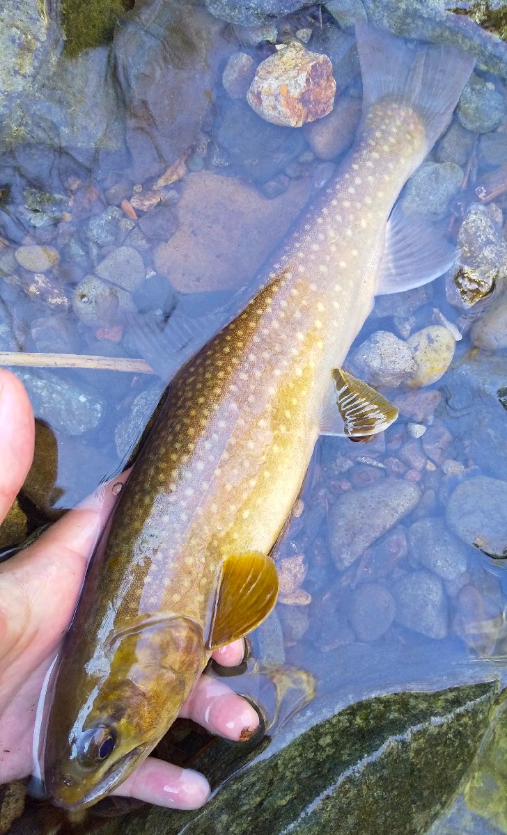 34センチの良型イワナがヒット。最初に釣れたイワナには及ばないものの十分過ぎる釣果です。さらに上流も気になりますが、今日はここで満足して帰宅しました。また機会があれば下流域も訪れてみようと思います。魚は全てリリースしました。