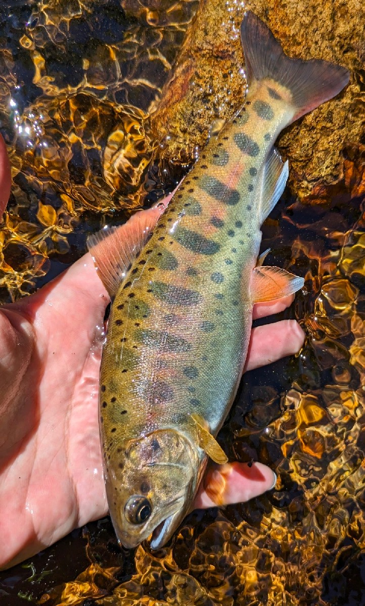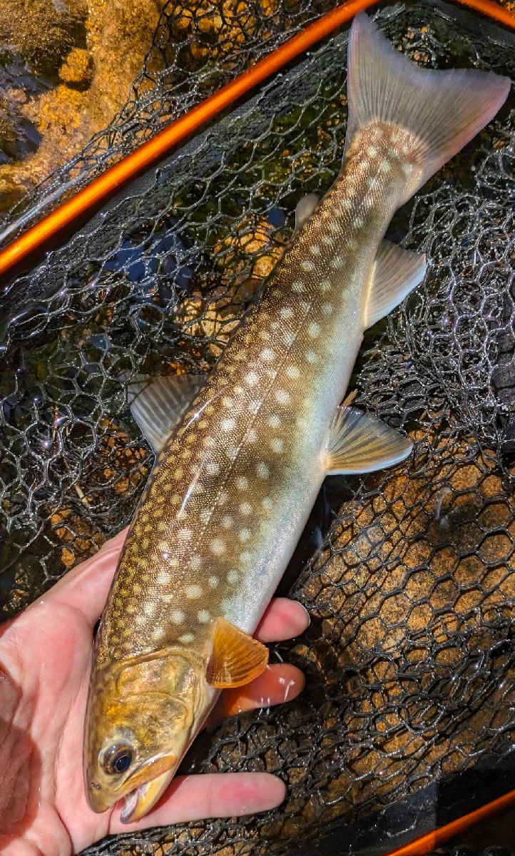 32センチの尺イワナがヒット。大場所で期待通り良型が釣れると気分が良いですね。