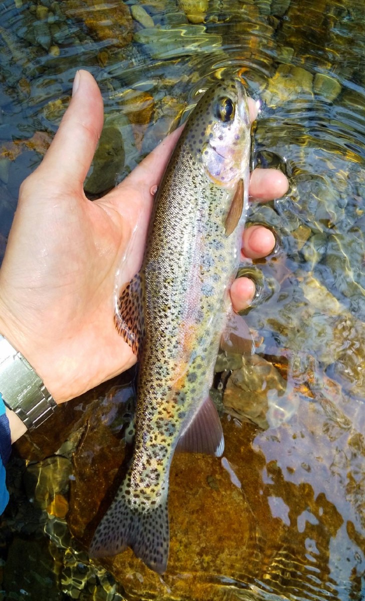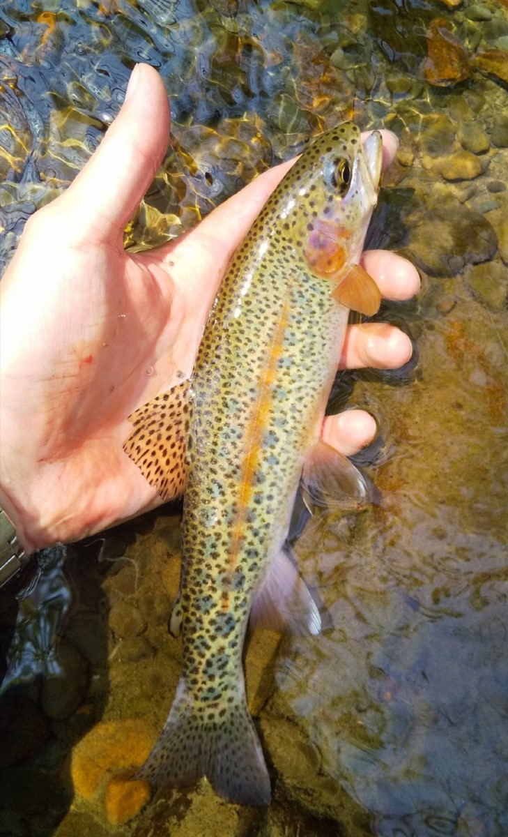 すぐに24センチのニジマスがヒット。支流の方が素直に食ってきますね。