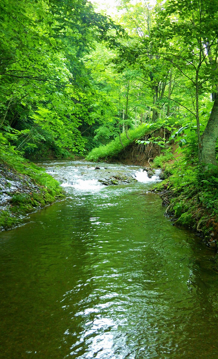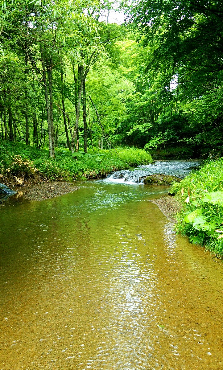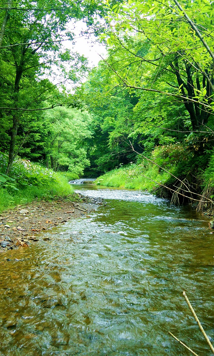 ペンケマヤ川は谷底を流れているため入渓場所は限られますが、河原に降りてしまえば穏やかな渓流が出迎えてくれます。するとここで早速