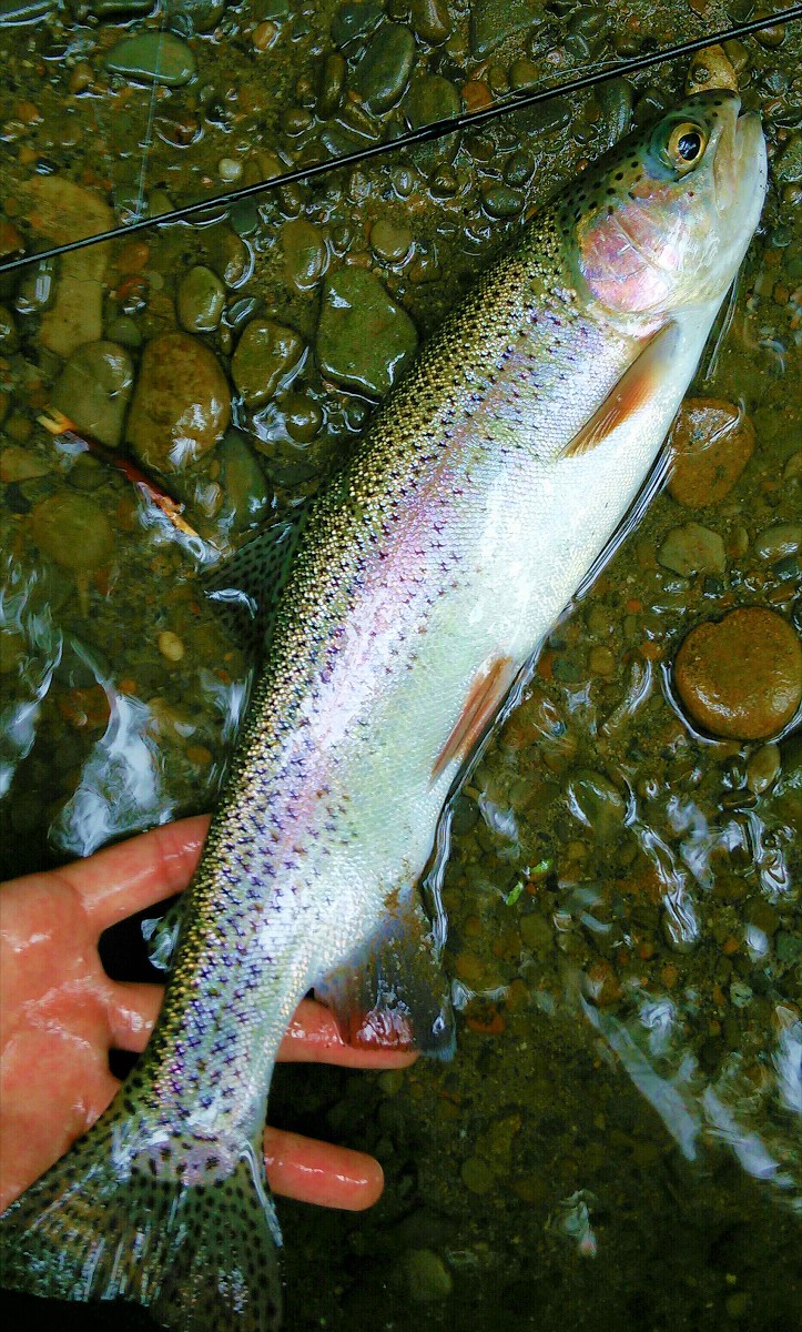 22センチのニジマスがヒット。さらに続けて