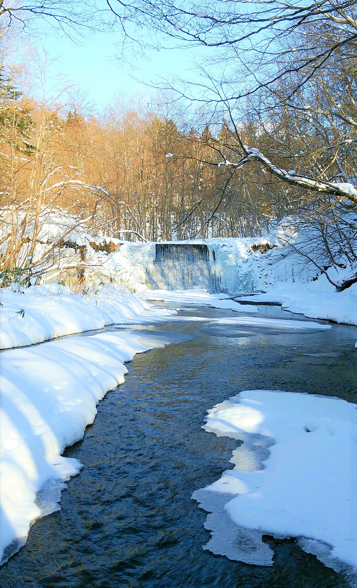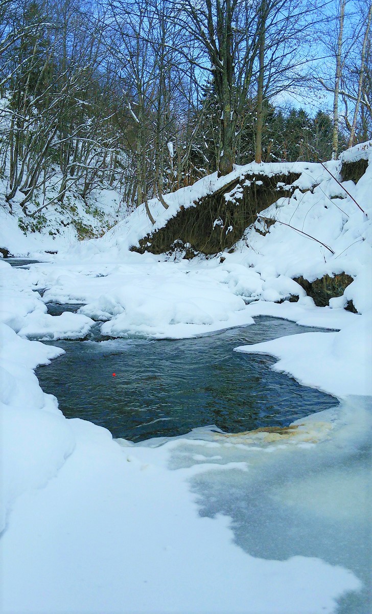 熊の心配が殆どない12月末に再びペンケマヤ川を訪れました。この深場は夏に訪れた時37センチのニジマスが釣れましたが、想像以上に凍結が進んでおり今日はアタリがありません。