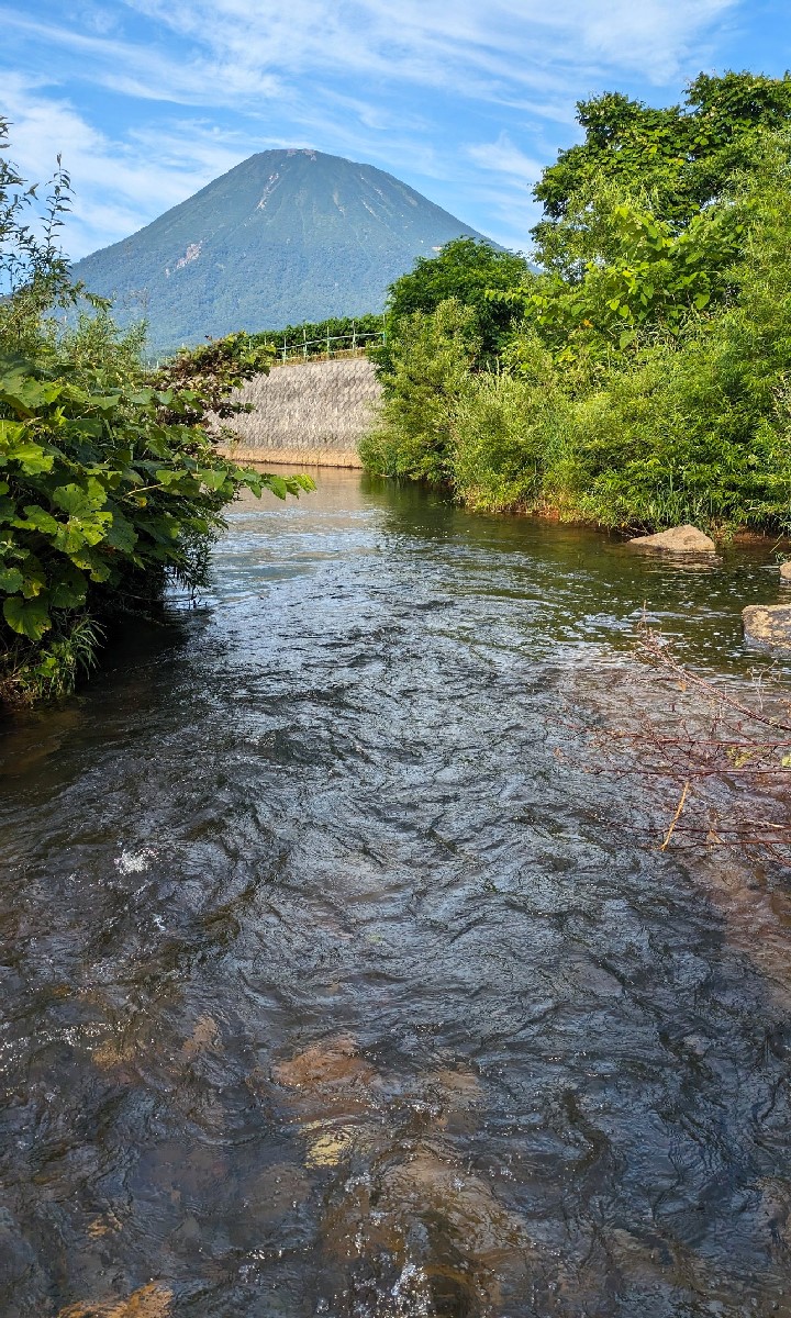 今日は京極町を流れるワッカタサップ川で釣りをしてきました。この川は何度か訪れた事があり、ご覧の通り羊蹄山をバックに釣りが楽しめる清流です。まずは入渓地点で幸先良く