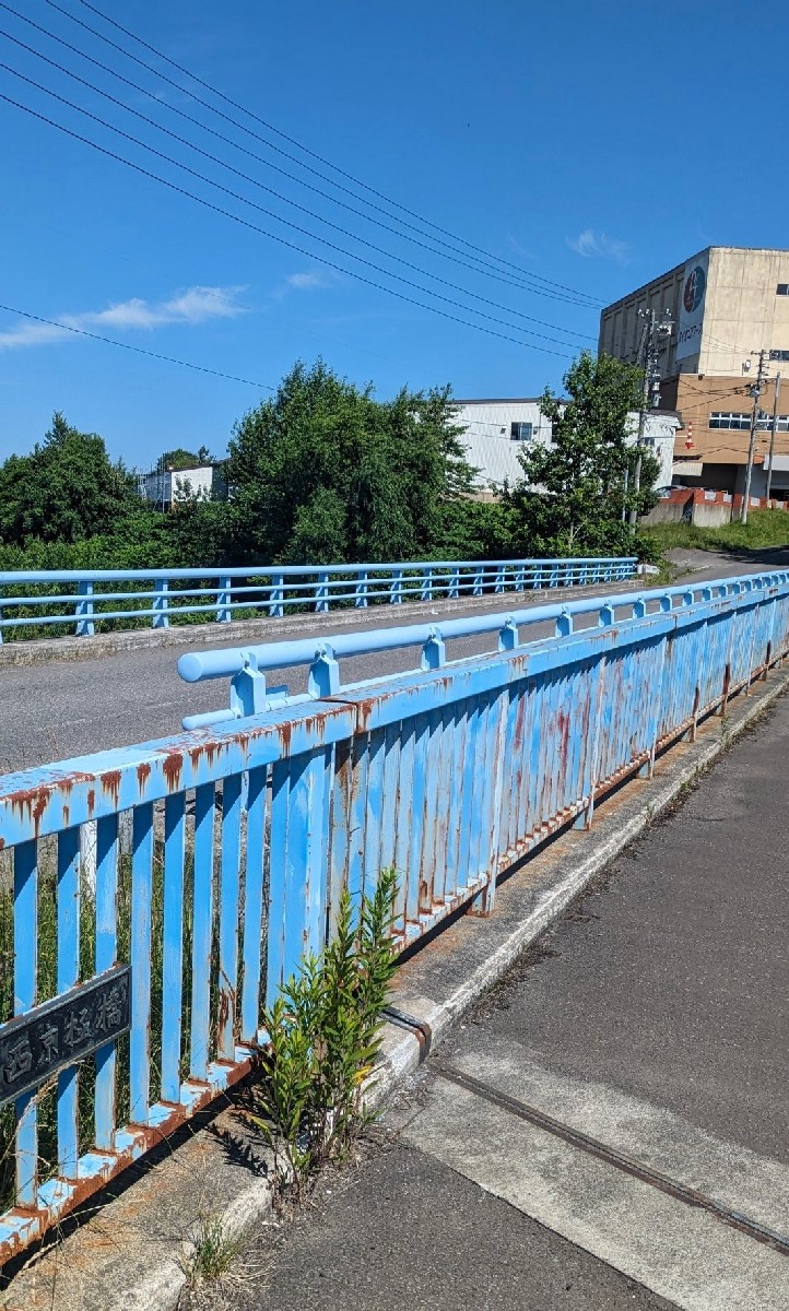 この川の下流域にある事件現場を見に来ました。写真はワッカタサップ川で一番下流に架かる西京極橋です。奥には食品工場も見えます。ここから100メートルほど下流に