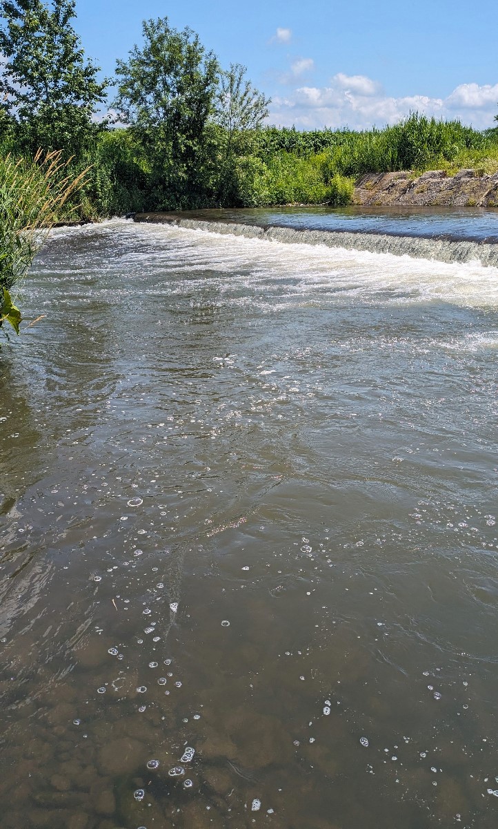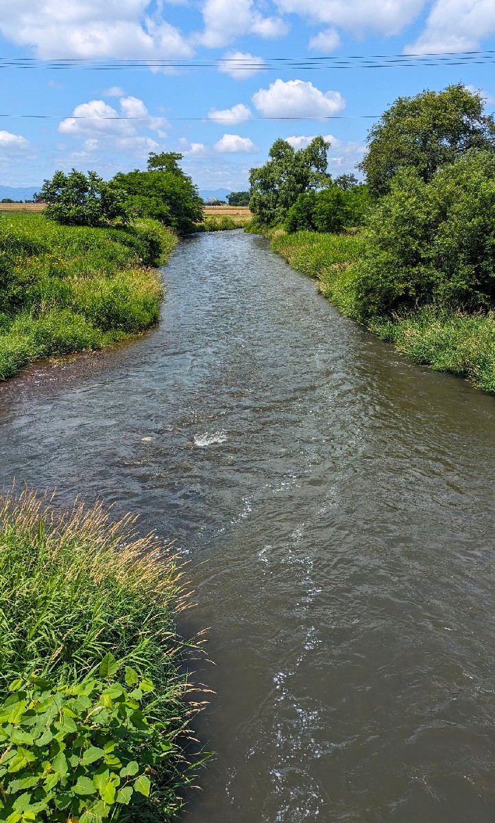 まず目に付いたのは用水路の流れ込みです。この大量の水は忠別川からの導水と思われ、倉沼川よりクリアな水質ですがノーヒット。このような流れ込みが多数ある影響で、倉沼川は流域面積以上の水量となっているようです。