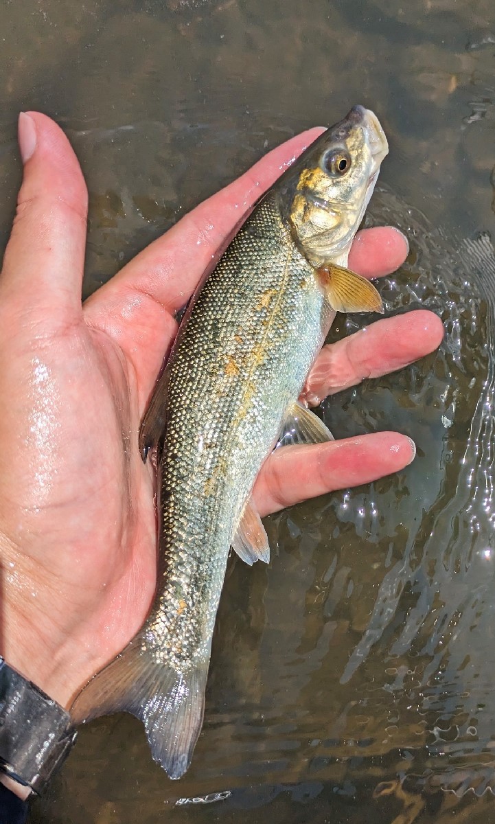 小さなヤマメがポツポツとヒット。この区間は流れが速いためかウグイは釣れませんね。
