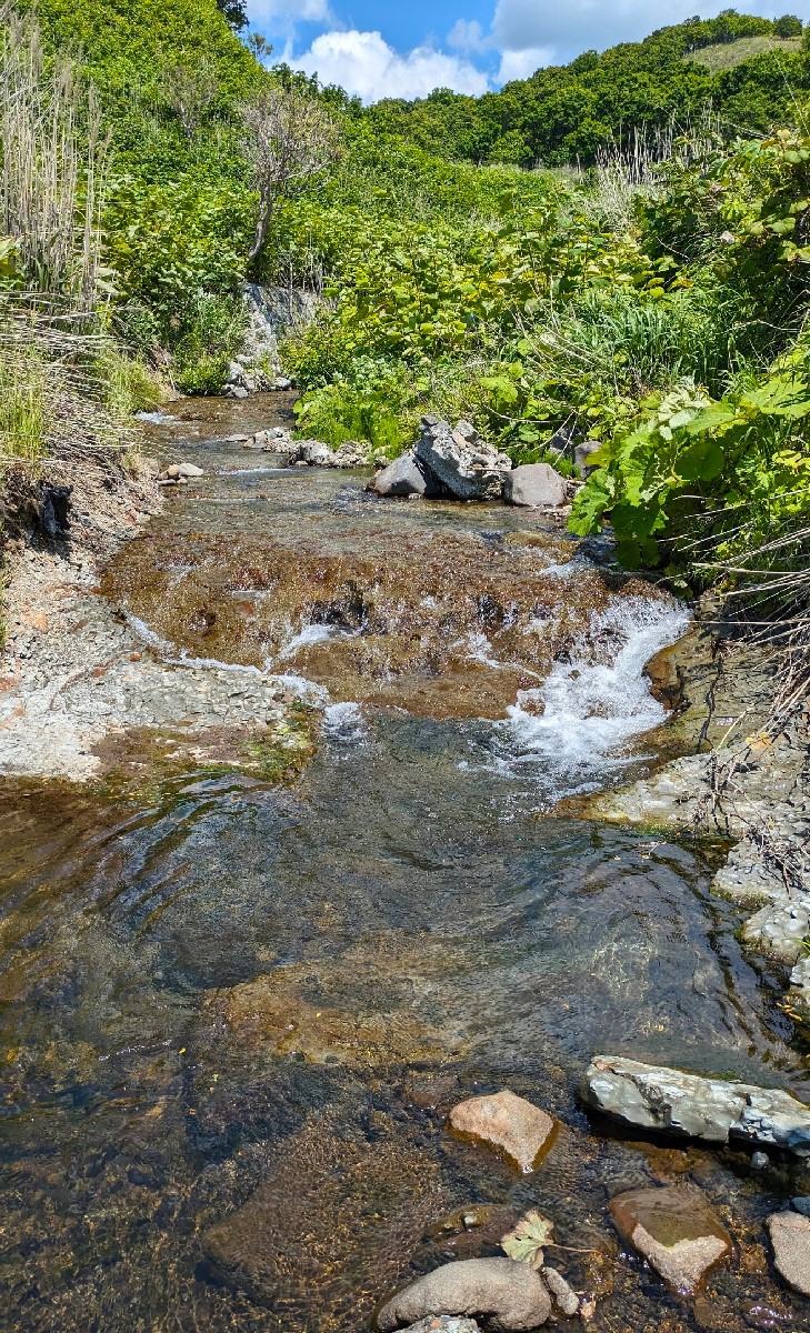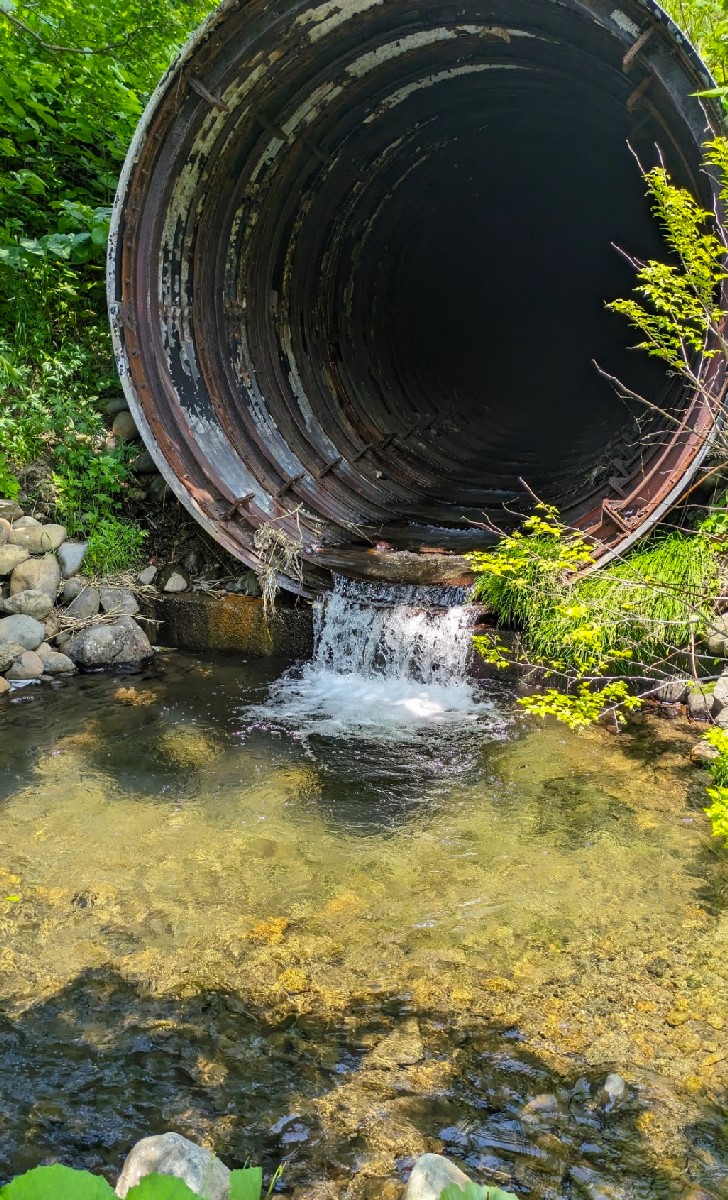となると気になるのはオロロンライン直下の深場です。ここで海から遡上した巨大アメマスを確保する予定でしたが、期待に反してチェイスさえありません。このトンネルは長さ100メートル以上あり、トンネルより上流は魚影がないはずですが、念のため迂回して進んでみると
