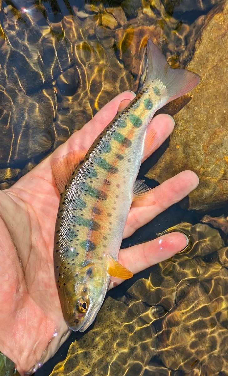 19センチの綺麗なヤマメです。やはり海から遡上できる下流域は渓流魚の魚影がありますね。