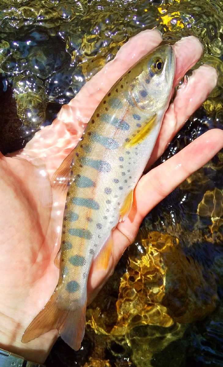 19センチのヤマメがヒット。実は新川水系でヤマメを釣ったのは初めてなので嬉しいですね。