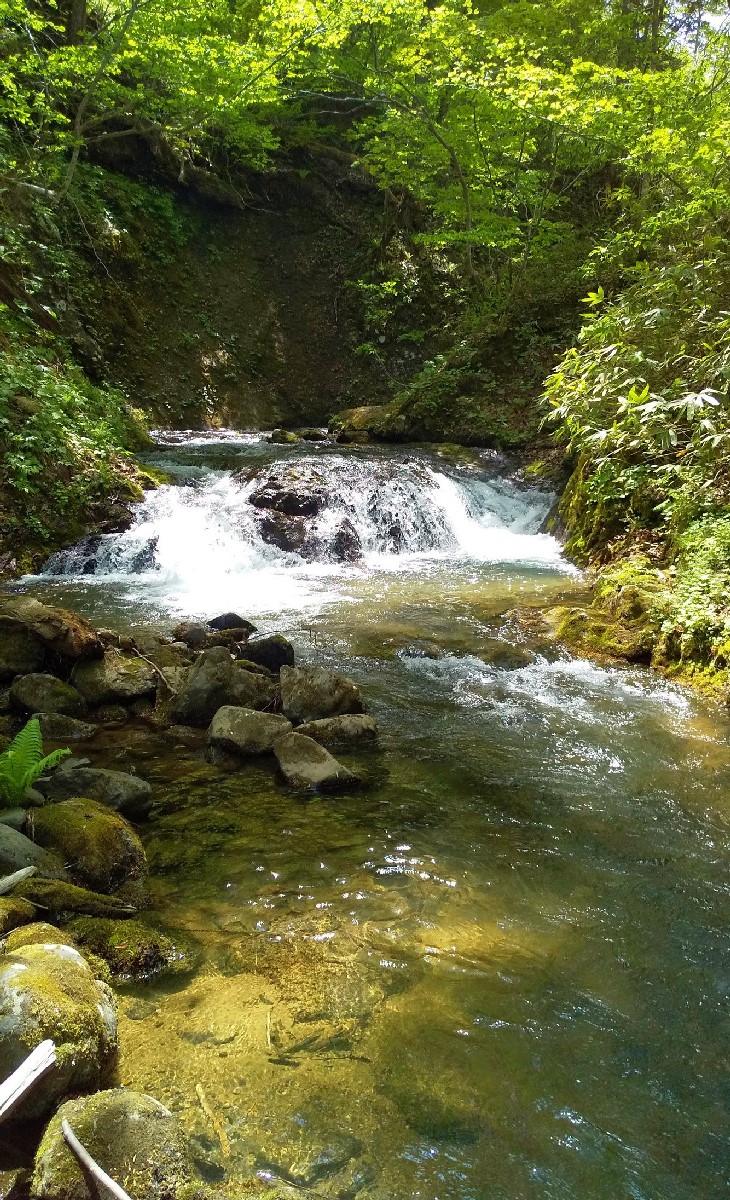 今日は札幌市西区を流れる宮城沢川で釣りをしてきました。宮城沢川は琴似発寒川上流域の支流で、写真は合流地点の様子です。ここから右の本流を遡行すると有名な平和の滝がありますが、今日は左へ進み精竜の滝を目指します。