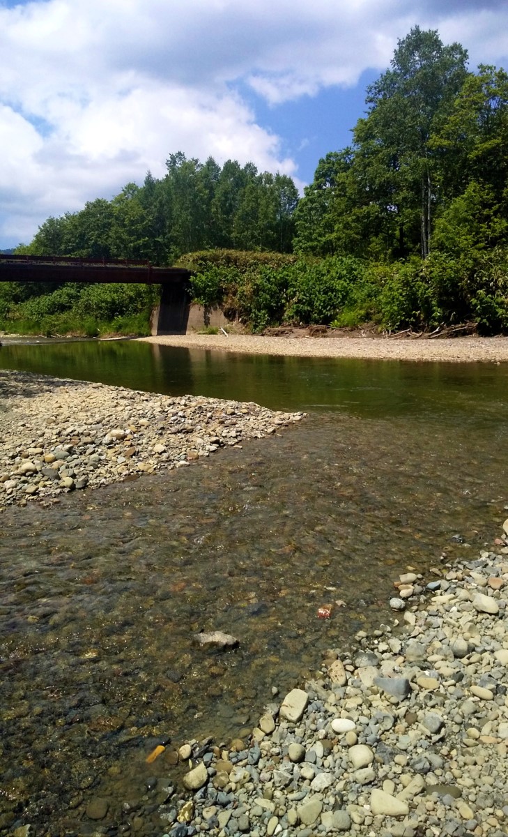 やはり湖育ちの極太ニジマスを狙いたいと思い、今度は小平ダムに流れ込む中記念別沢川に来ました。この支流は比較的水質が良かったので期待しましたが、