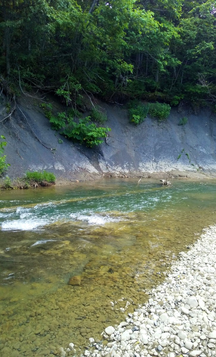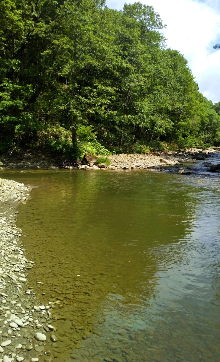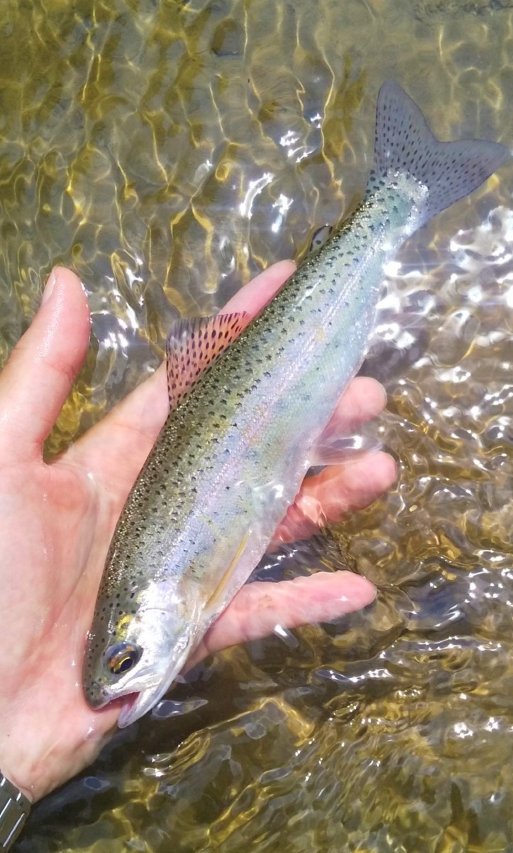 21センチのニジマスでした。無事渓流魚の生息は確認できましたが、それほどニジマスの魚影は濃くないようで大物の気配もありません。さらに上流だと状況が変わるかもしれないと思い、