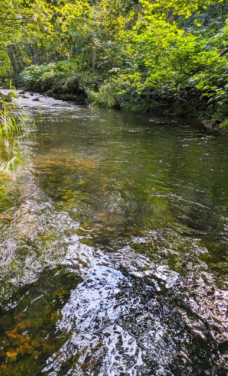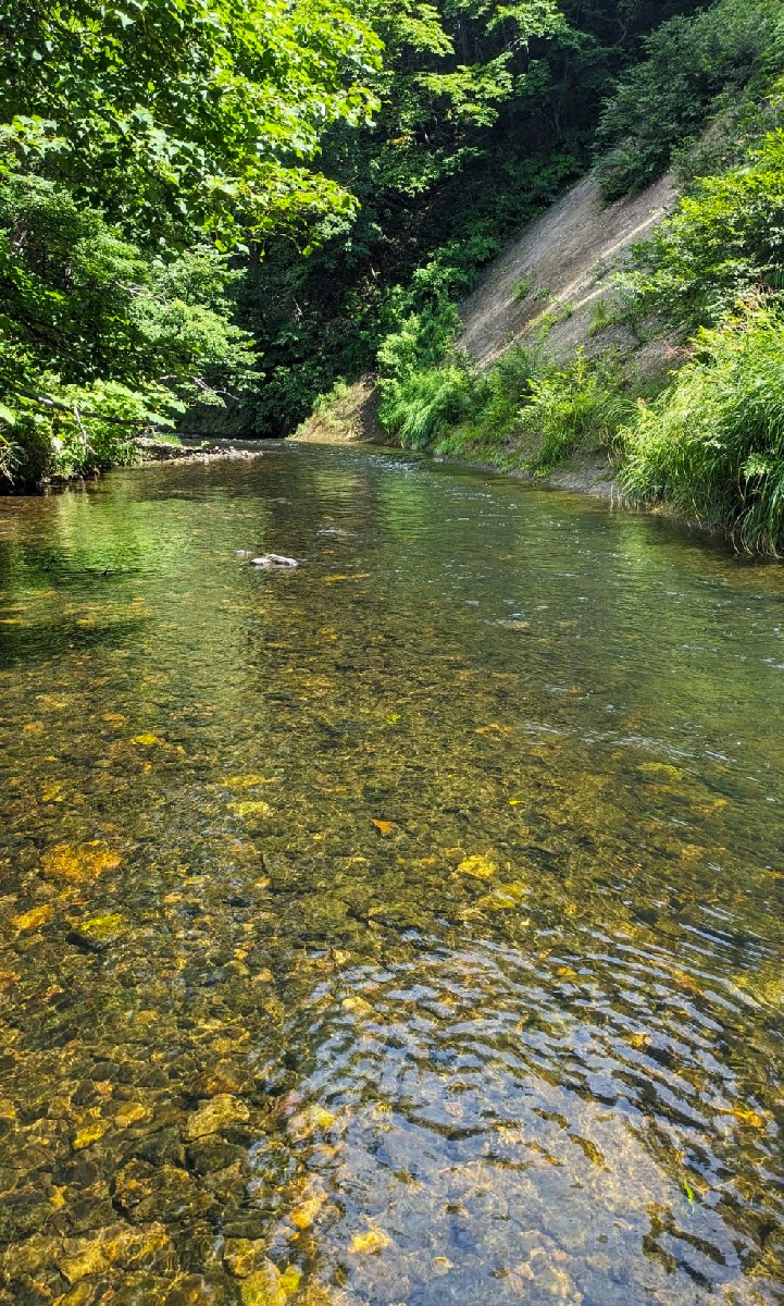 河原が殆どない渓相に加えて真夏でも水量豊富のため、春や秋に釣り歩くのは困難な川です。その分大物が釣られずに残っているかもと期待し釣り上がると、