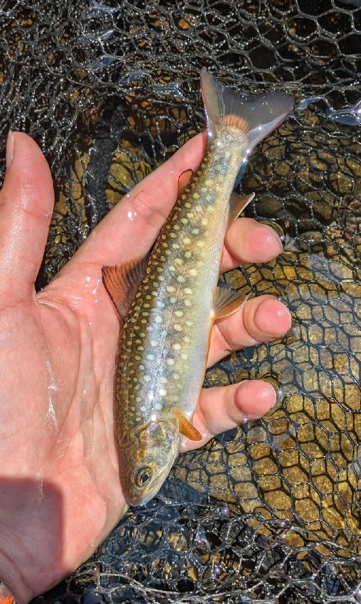 小さなイワナが飛び出します。想定より魚影はありますが小物しか釣れません。
