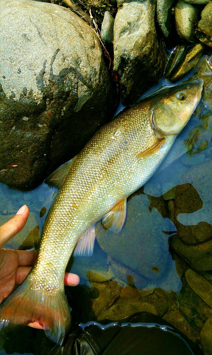 40センチの巨大ウグイでした。渓流魚を期待した分少し残念ですが、太さも重さも半端ではありません。これはこれで滅多にお目にかかれない大物ですね。