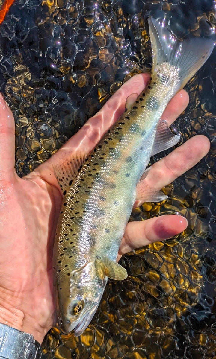 21センチのヤマメです。魚影が薄い中で、やっと1匹渓流魚が釣れてくれました。
