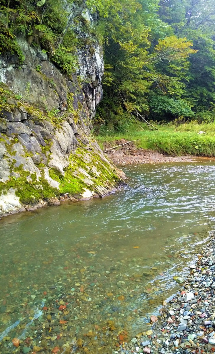 まずは上流域から入渓すると写真のようなポイントが点在していますが、渓流魚の魚影はありません。