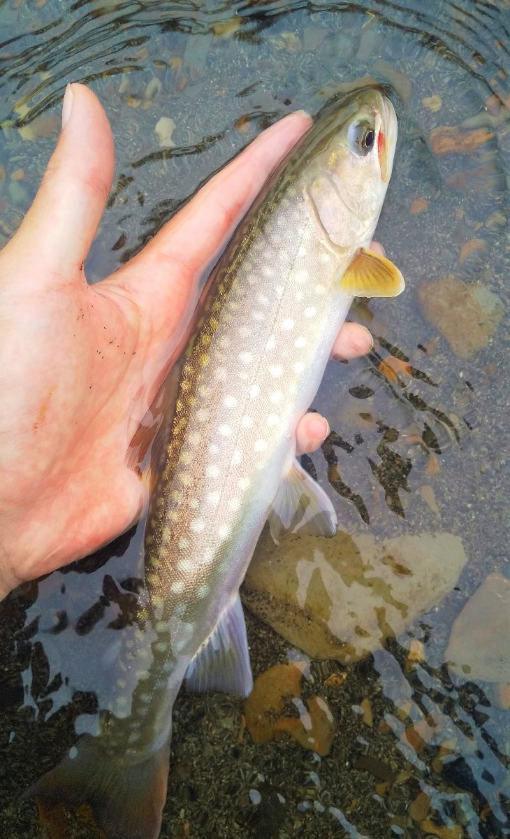 中流域では意外な尺イワナでした。思いのほか魚影がありますね。
