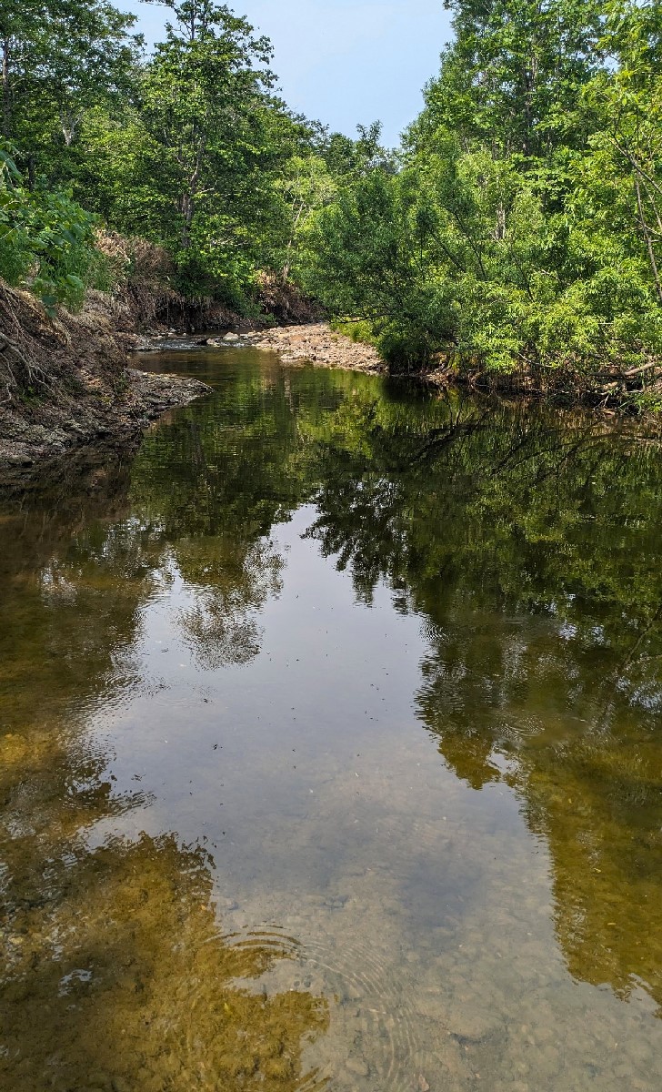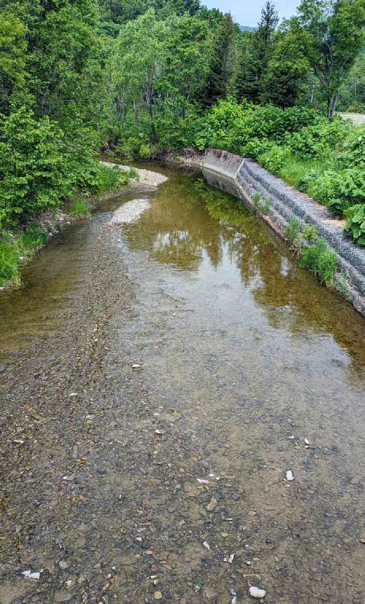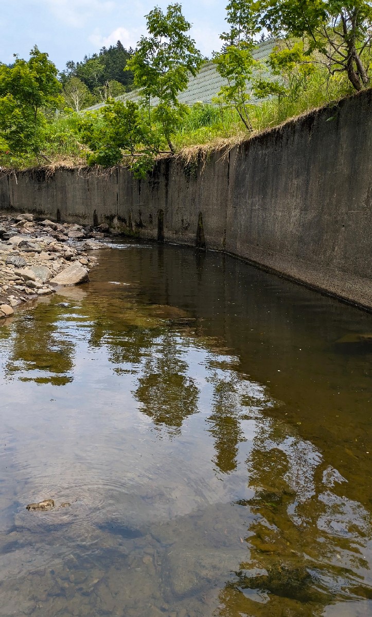 今日は幌加内町を流れる早雲内川で釣りをしてきました。まずは最下流部を見てみると、最近雨が少なかった影響で予想以上に渇水していますね。