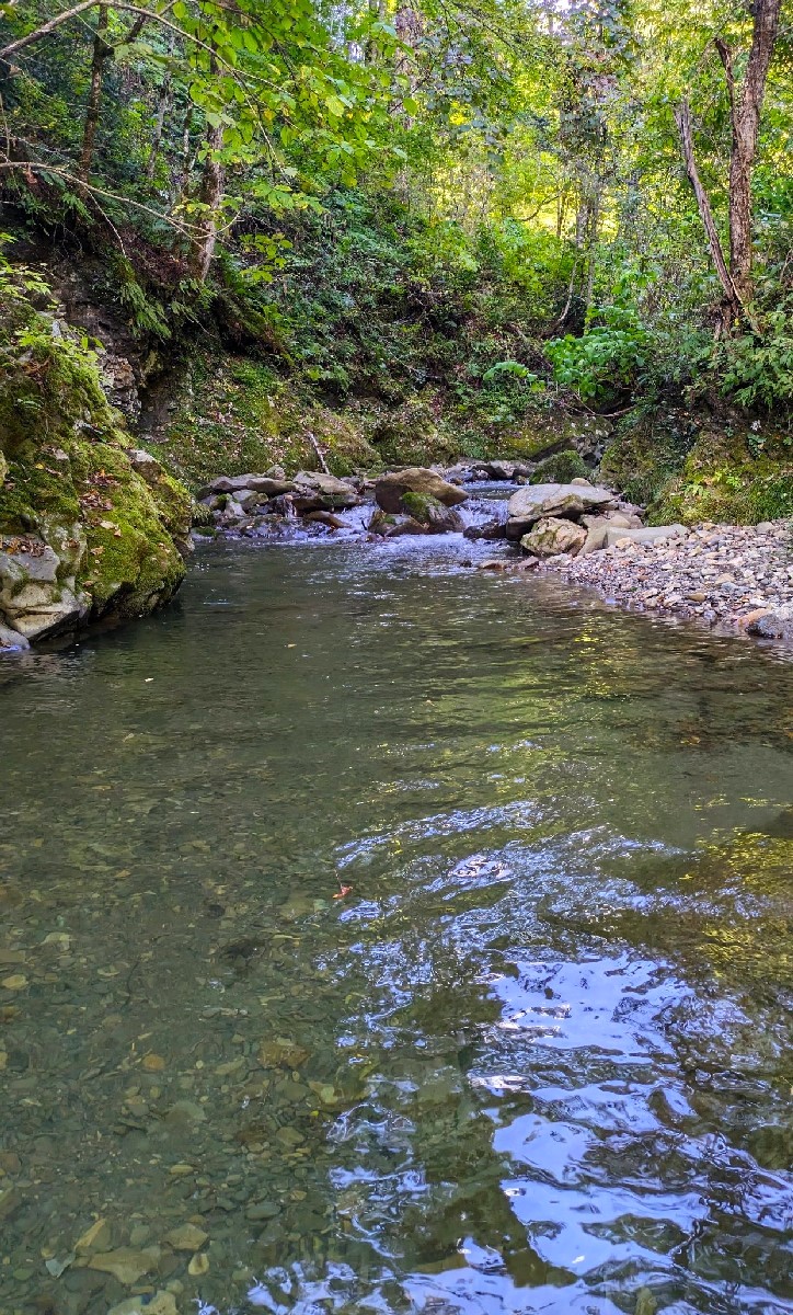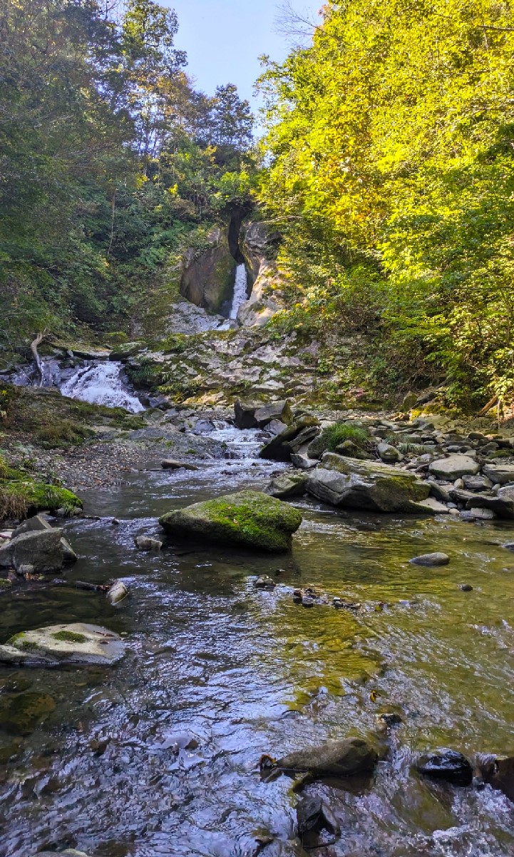 ちなみに滝の直下には絶好の深場がありますがノーヒット。今回はここで撤退しましょう。