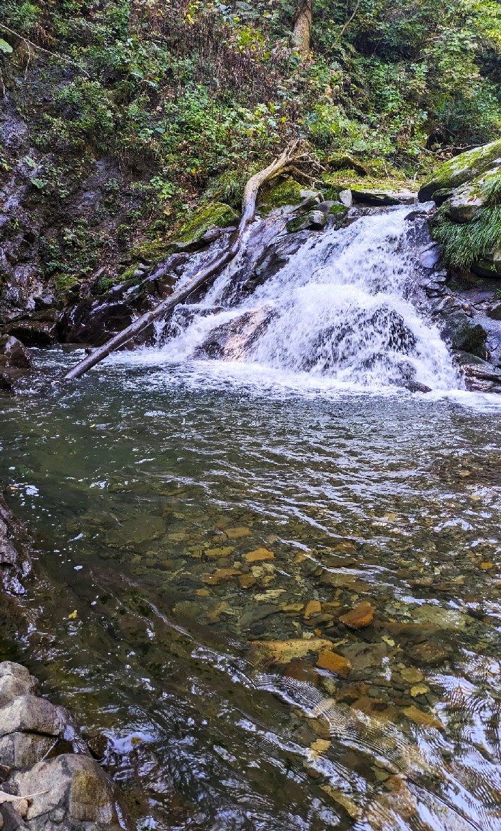 さらに奥地を目指すと芦別川との合流地点から1キロちょっとで月見沢の滝に到着。