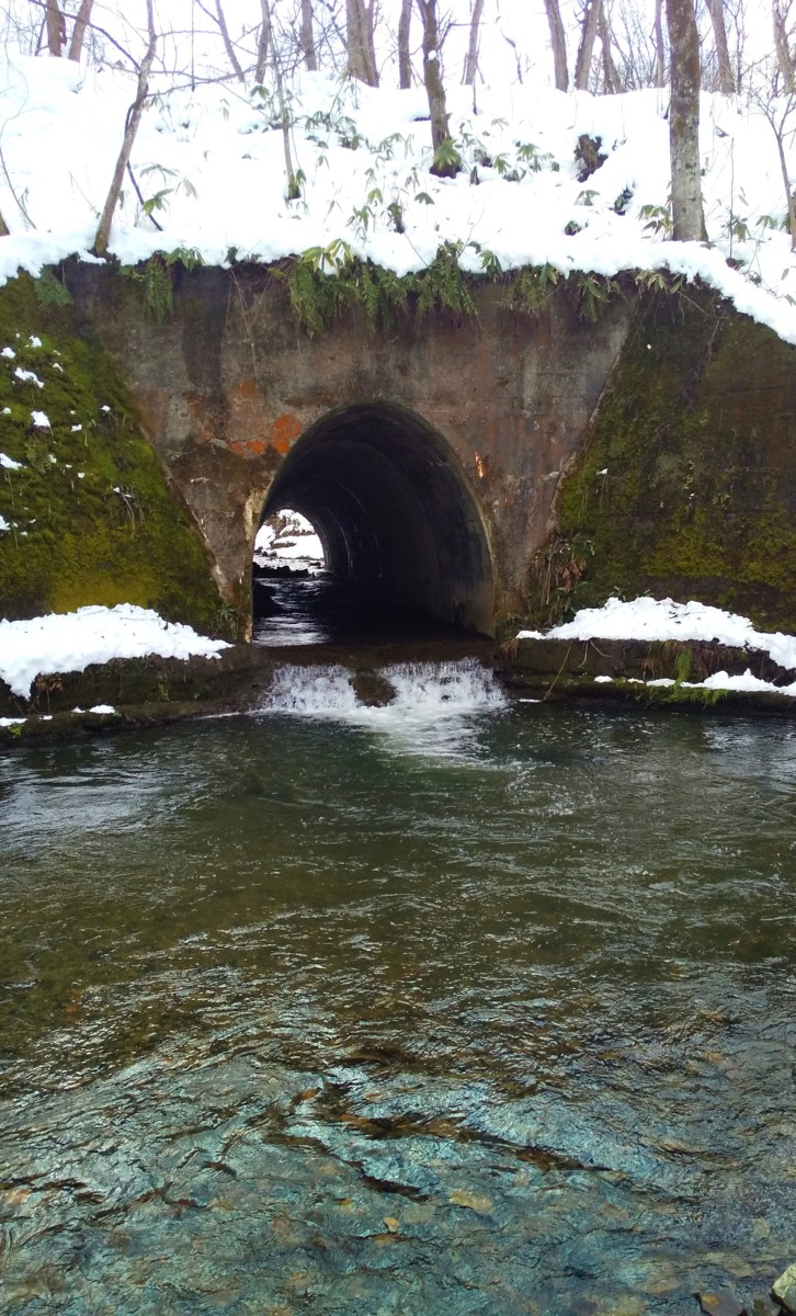 トンネルを抜けて上流へ歩いていくと再びトンネルと深場があります。こちらのトンネルは向こう側が見えません。