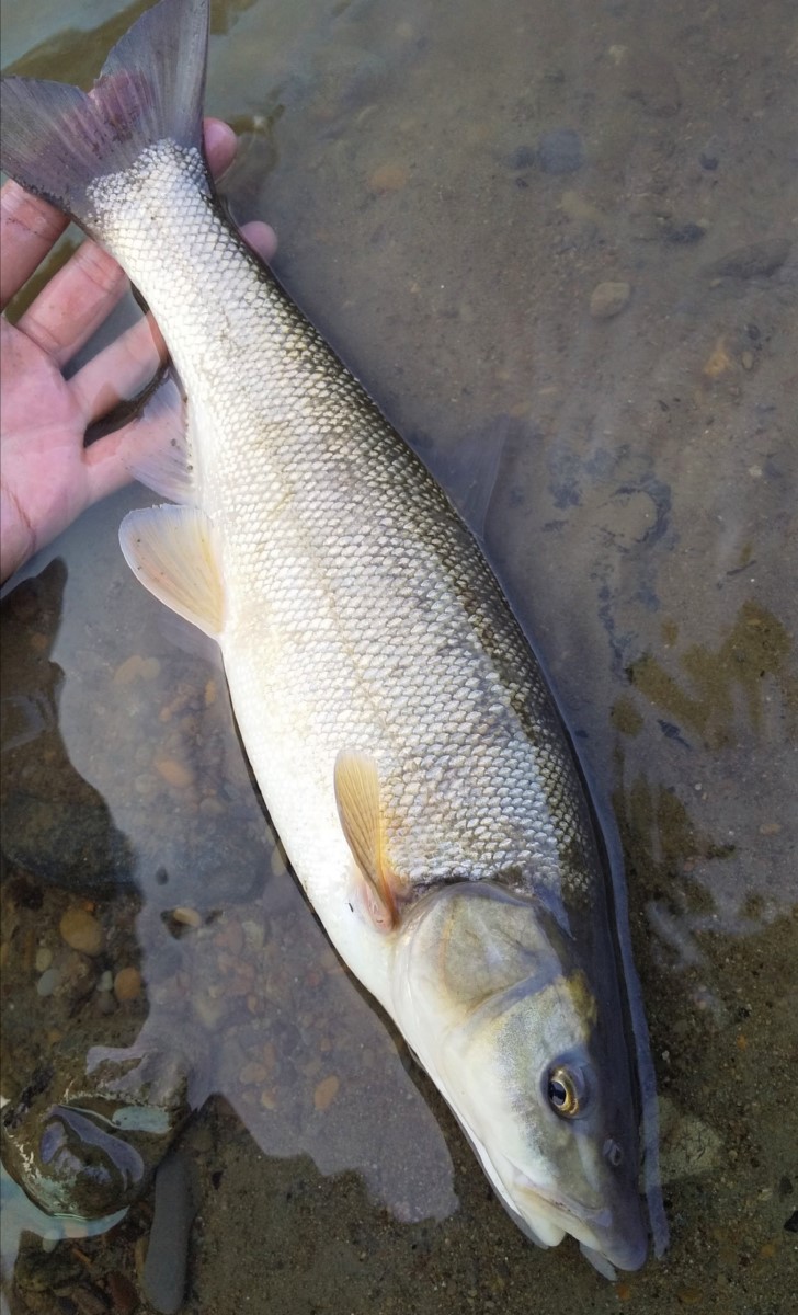 釣れたのは巨大ウグイでした。とりあえず魚類は生息しているようですね。