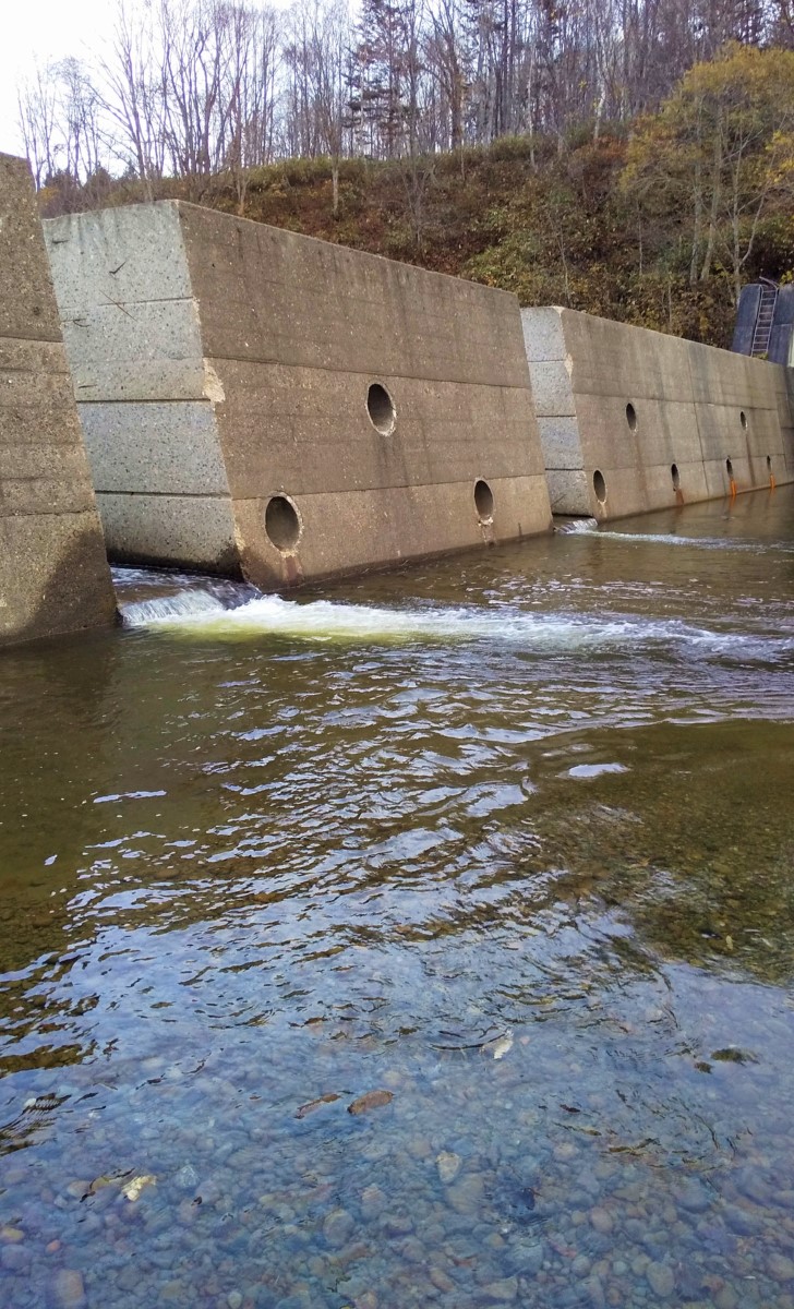 さらに上流に向かうと今度はスリットダムがありました。ここでもアタリを確認しましたが、魚が小さく針に掛かりません。おそらくウグイの稚魚でしょう。