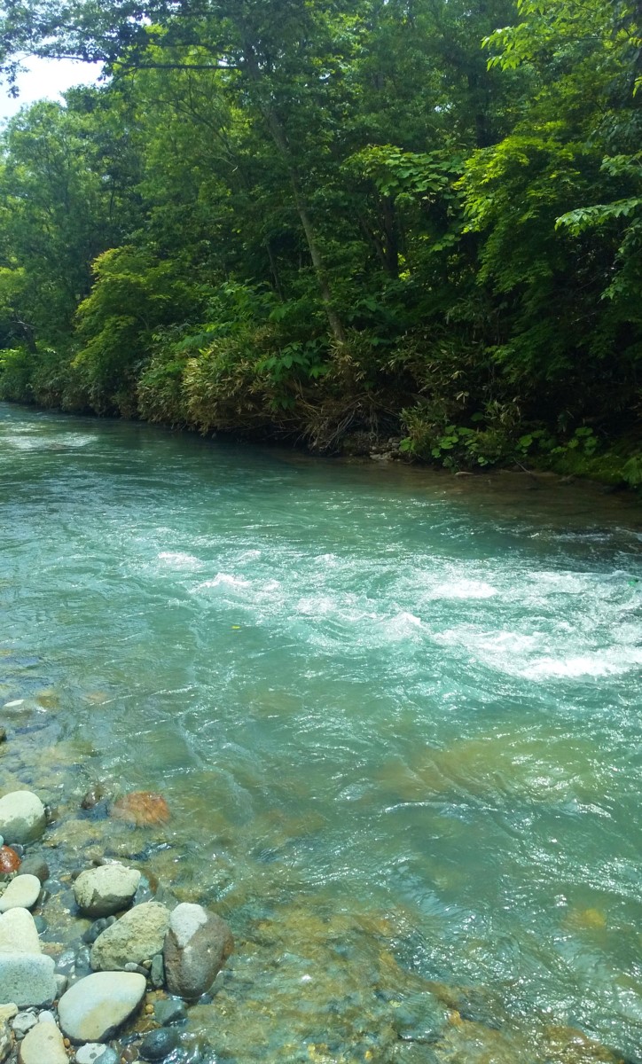 今日は登別市を流れる登別川で釣りをしてきました。地獄谷の水が流れ込むクスリサンベツ川など温泉成分が濃い支流を有し、本流も青白く濁っています。しかし登別川はサケが大量に遡上する河川でもあり、魚類の生息に問題がある水質とは思えません。河原に降り立つと思いのほか綺麗な水が流れており、渓流魚が生息している可能性もありそうです。