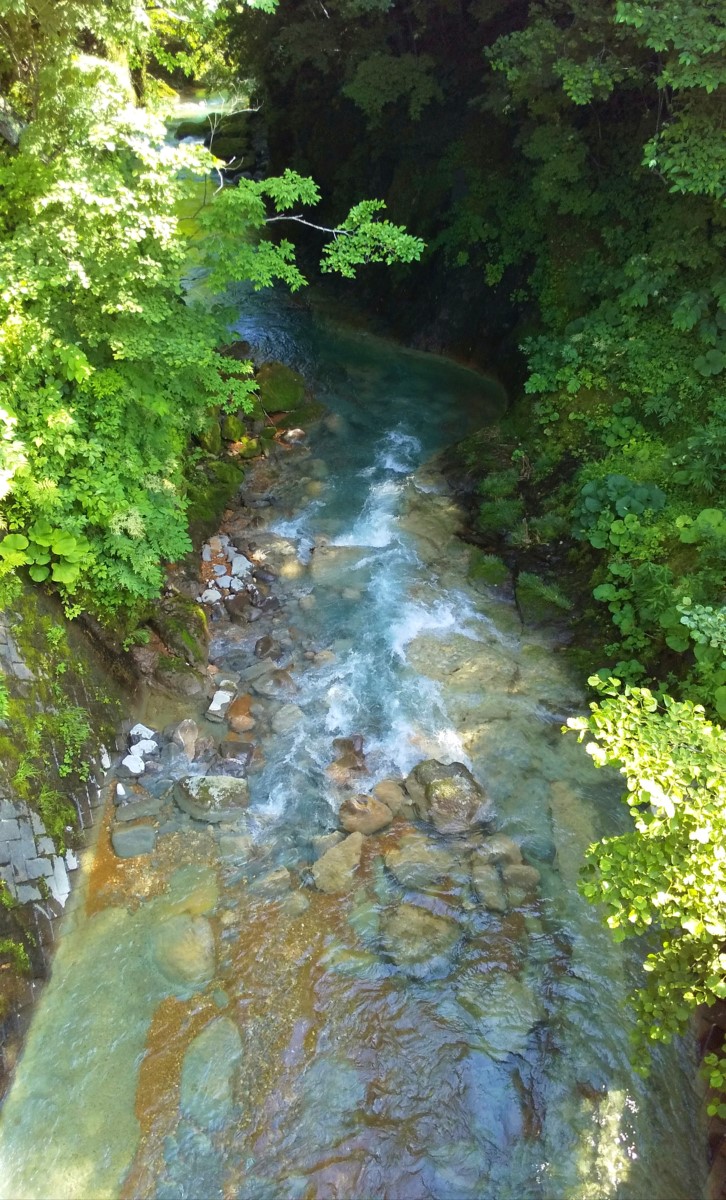 その後ヤマメが好みそうな藪が覆い被さるポイントを探るもノーヒット。温泉の影響か速い流れの影響か、稚魚や幼魚の姿は全く見当たりません。登別川には小魚を育むような支流がない事も一因でしょう。