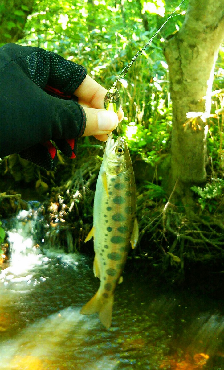 14センチのヤマメがヒット。正直知津狩川なんて今まで見向きもしていませんでしたが、流れる水さえあればどこでも渓流魚がいる可能性がある事を実感させてくれますね。