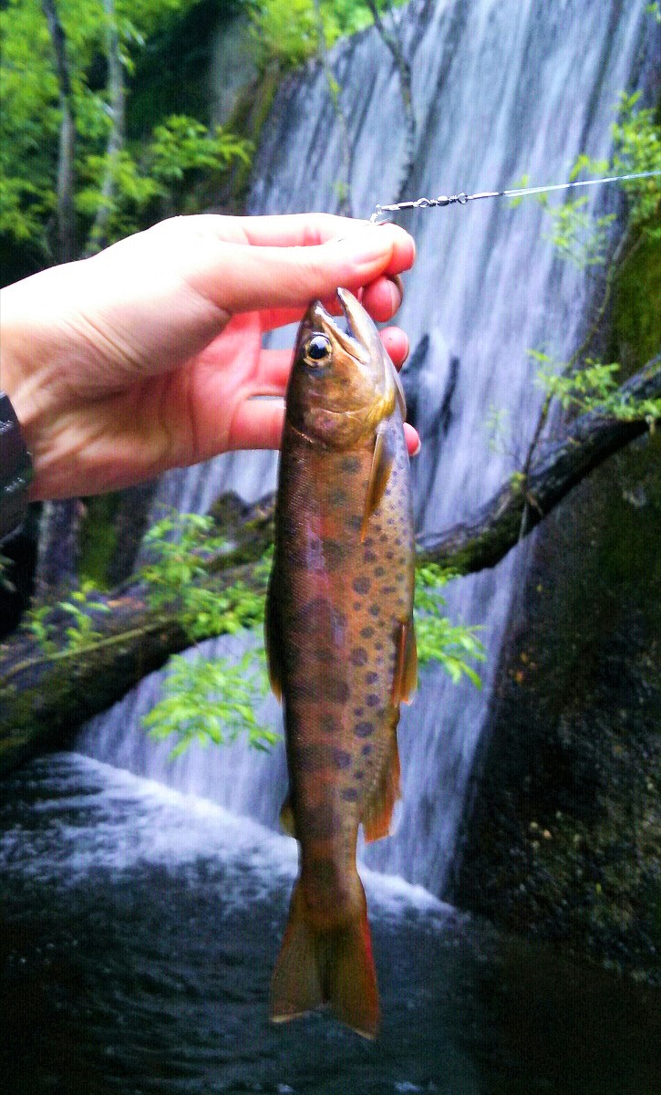 24センチの良型ヤマメがヒット。まさか知津狩川でこんな良いヤマメに出会えるとは思っていませんでした。まだ初夏なのに錆びた魚体で目が大きいのは、木々に囲まれた砂防ダムの暗い川底で生きてきたからなのかもしれませんね。このヤマメに大満足し今日はここで帰宅しました。また機会があればもう少し下流を訪れてみようと思います。魚は全てリリースしました。