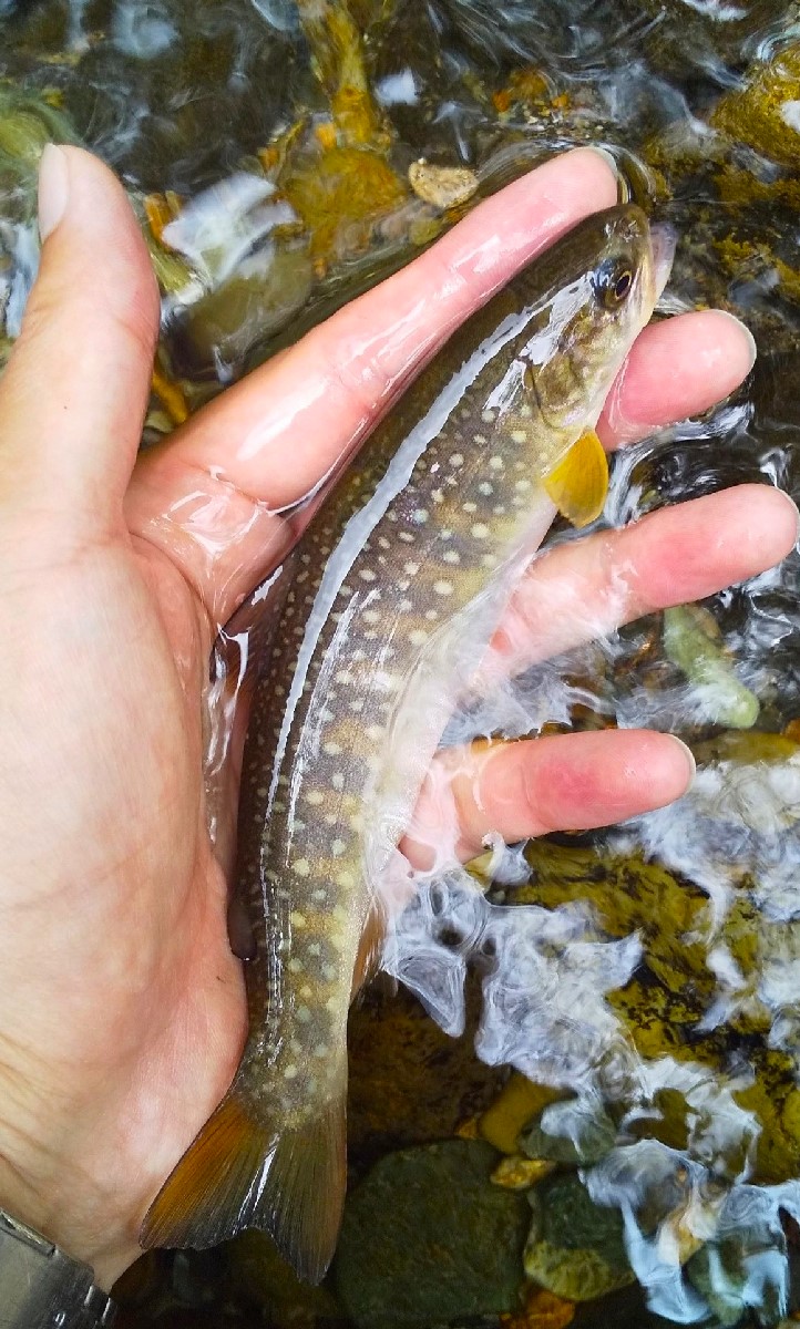 釣れたのは20センチのイワナです。期待のポイントで肩透かしを食らい、今日はここで帰宅しました。これなら競争率が高くても西達布川か空知川本流で大物を狙った方が面白そうですが、また機会があれば訪れてみようと思います。魚は全てリリースしました。