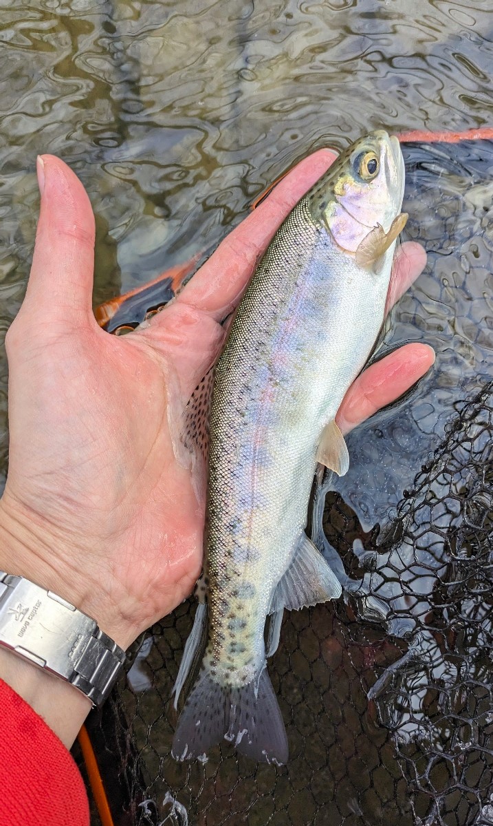 辛うじて23センチのニジマスがヒット。先程と似たようなサイズですね。ちなみに草木舞沢川にはニジマスしか生息していません。
