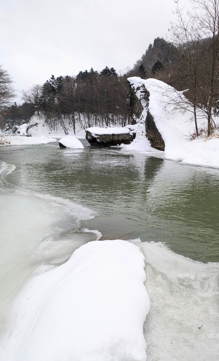 未開拓エリアに存在するかもしれないビッグポイントを目指して釣り上がると、流れに変化があるポイントを発見。しかし時期的に厳しいためかノーヒット。