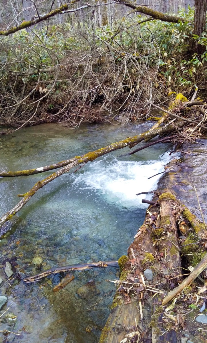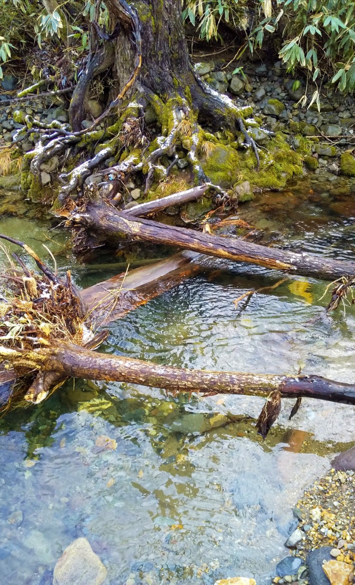 時期的に流れの速いポイントでは釣果が見込めないので、倒木が絡む深場に仕掛けを投入すると