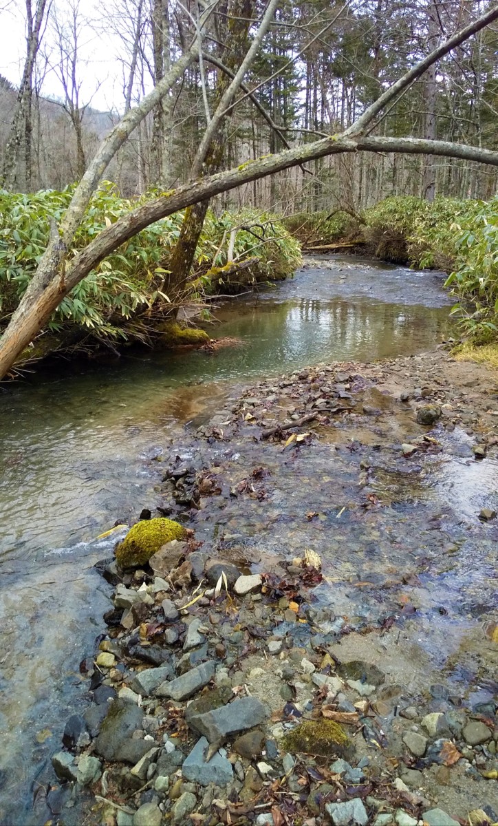 いきなり25センチのブラウントラウトがヒット。やはり激戦区の美笛川と比べて釣り人が少ないという事でしょう。しかし1キロほど釣り上がっていくと、