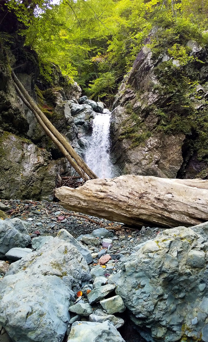 本流は思いのほか攻められている印象なので、ここで思いきって支流を1キロほど遡行してみると荒々しい渓相の奥に滝が見えてきました。