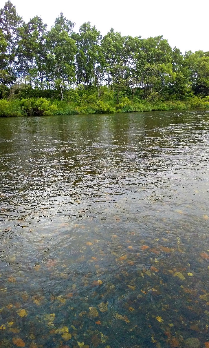 倶知安町を流れる尻別川に到着。ここまで来ると河川規模的に釣りが難しい場所も多いため釣り人は少なくなります。それにしてもこの水量で透明な水を保っているのは名流の証ですね。