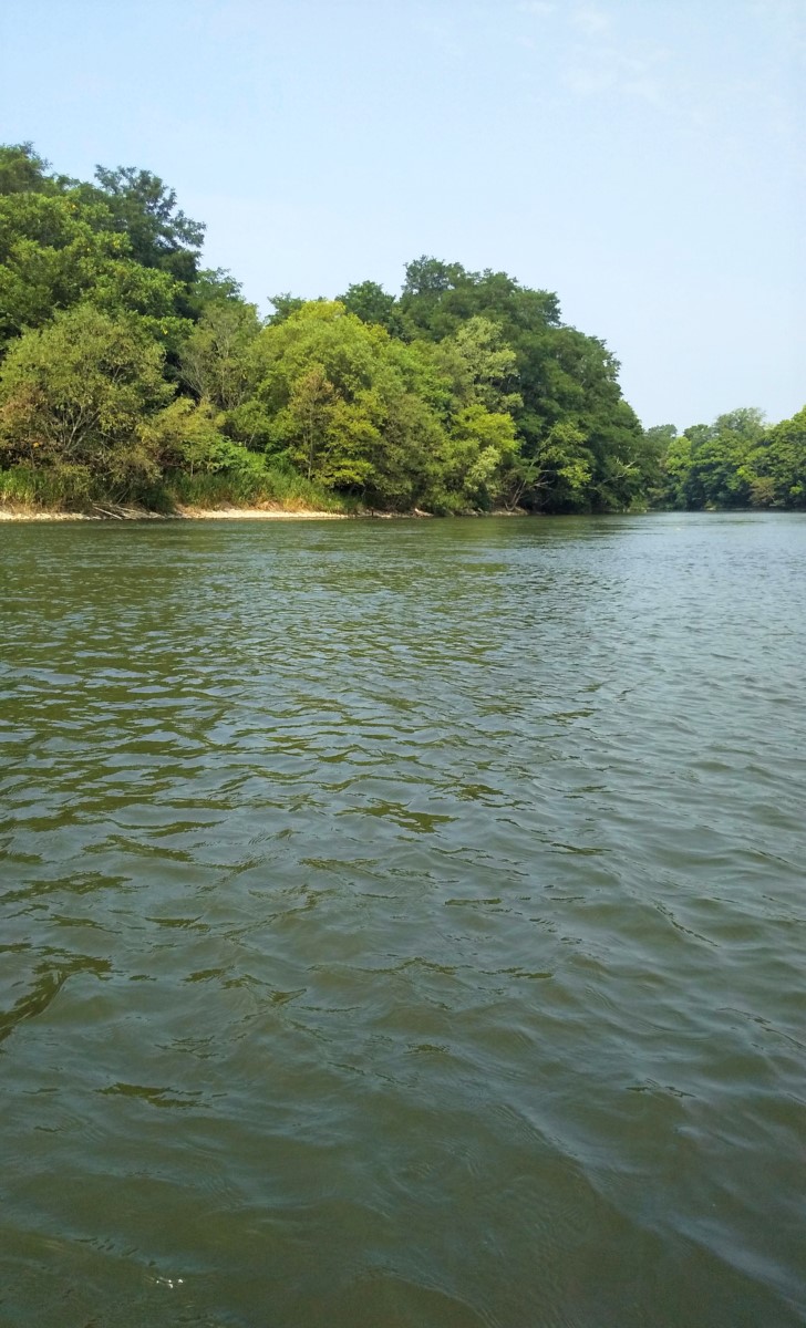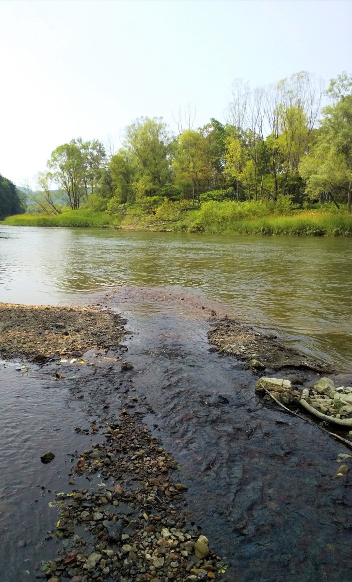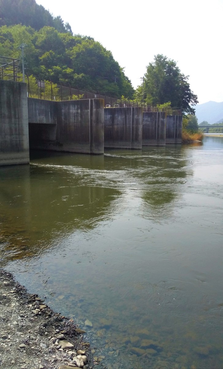 普段は水量が多く立ち込むのは厳しいポイントですが、渇水期は合流地点から釣り下る事が可能です。重めのスプーンを遠投し、対岸の流れが速いポイントを攻めると