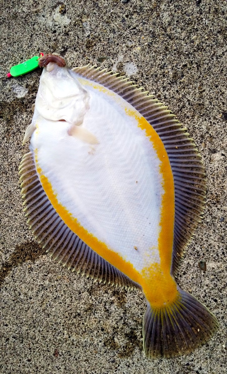 いきなり良型スナガレイがヒット。鮮やかな黄色が美しいですね。早くも今日の運を使い果たしたかと思いきや、