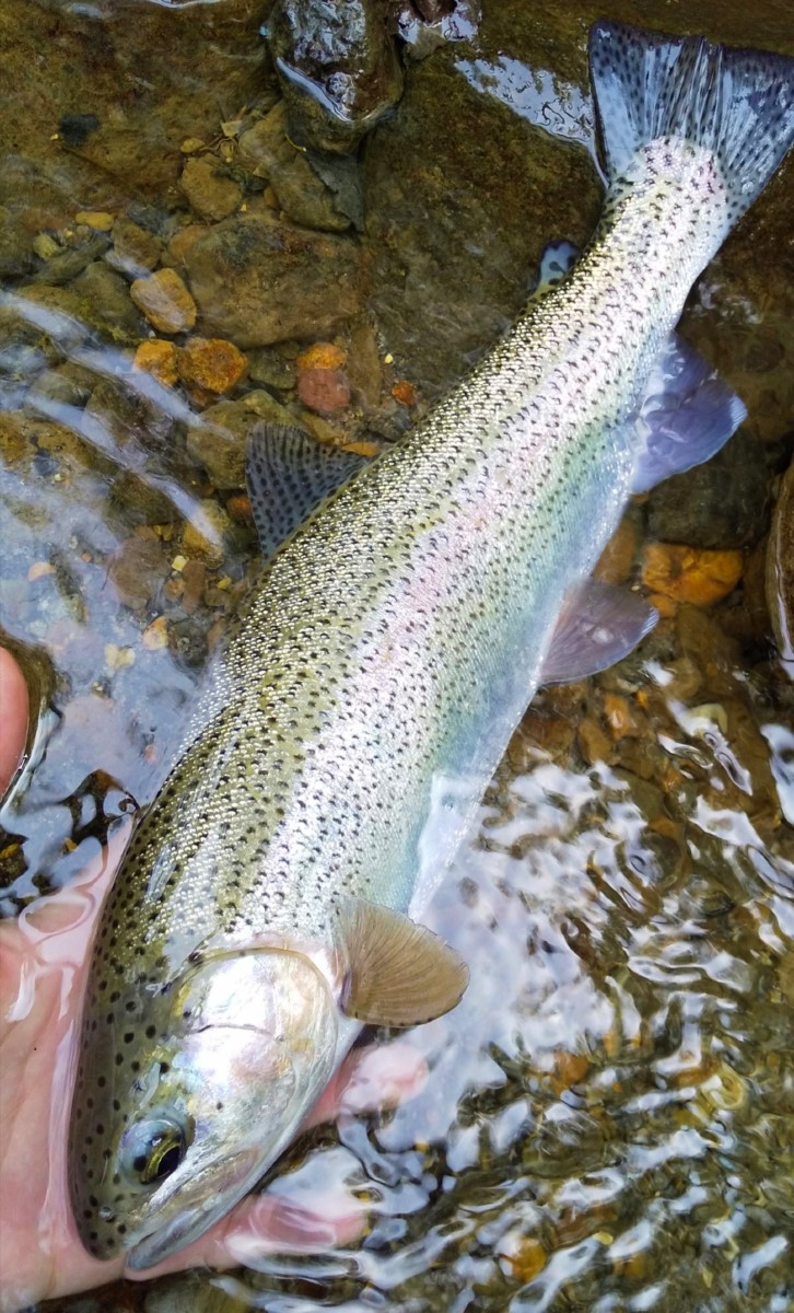 ニジマスのアタリが落ち着いた後には美しいオショロコマの魚影も確認し、今日はここで帰宅しました。大物ニジマスが狙える山岳渓流は珍しいので、また機会があれば訪れてみようと思います。魚は全てリリースしました。