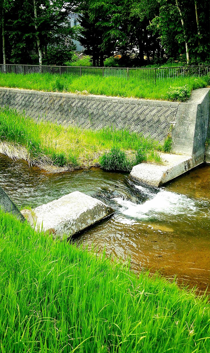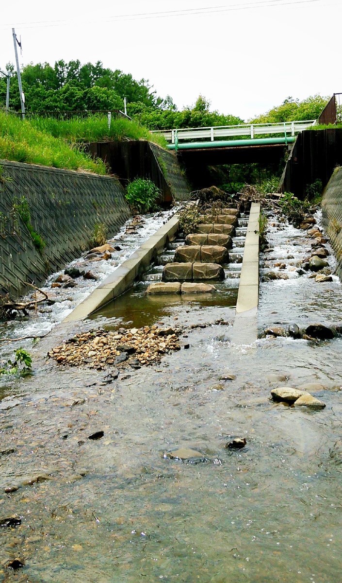 今日は小樽市を流れる銭函川で釣りをしてきました。上の写真は銭函駅の近くで撮ったのですが、ご覧の通り人工の滝が連続する超急流河川です。ただこの辺りは流石に滝が多過ぎるので、もう少し上流を見てみましょう。