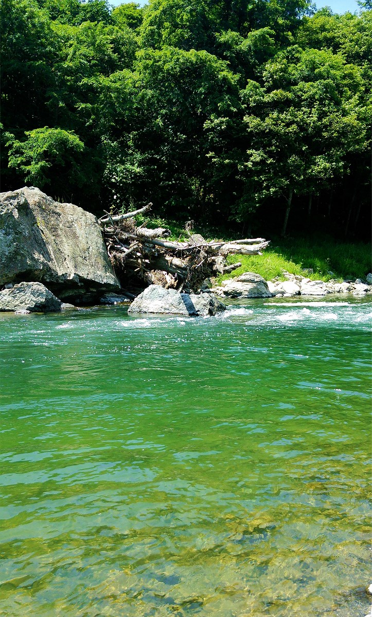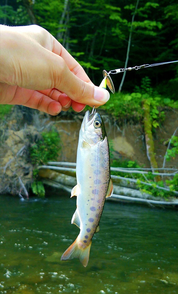 真新しいサケの血痕を発見しました。もしかしたら今朝の物かもしれません。とりあえず今日は帰宅して、明日サケの食いが立つ早朝に再び訪れてみましょう。